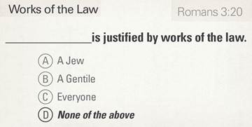 In the Old Testament, the Jews’ appeal to God for salvation and forgiveness is typically grounded in His loving-kindness. Paul offers his comment in 3:20—that no flesh shall be justified by works of the law—as if it is common, well-accepted information that all could agree on. Paul is not making a new assertion; he is essentially asking a multiple-choice question nearly anyone of that time would have gotten correct.