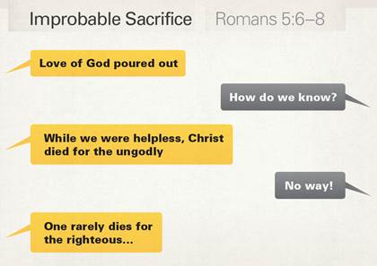 Improbable Sacrifice: Paul makes a series of statements, each introduced with “for,” which signals that the statement strengthens the preceding one. It accomplishes the same task in Greek that rhetorical questions would do in English. Each question helps the audience understand how the new statement relates to the preceding ones.