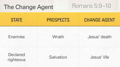 The Change Agent: Paul draws a comparison in which our relationship with God and the prospects of that relationship are compared based on Jesus’ death and His life—and the changes they bring.