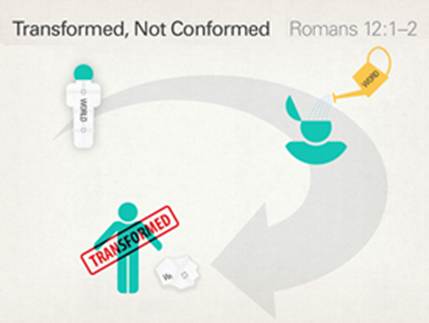 Transformed, Not Conformed: Paul uses the metaphor of transformation to describe the discipleship process. Now that we have been set free from slavery to sin, we no longer need to conform to the patterns of this world. The same Word that brought the transforming message of the gospel will continue that transformation through the renewing of our minds.
