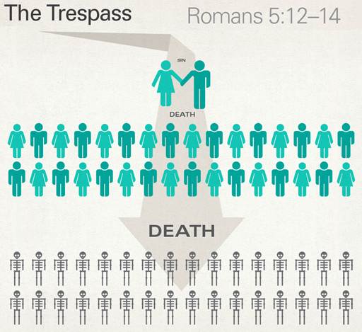 The Trespass: When Adam sinned, death was introduced into the world along with sin. As others sinned, death also spread as a natural consequence; thus all died.